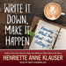 Product Description A simple and effective guide to turning your dreams into reality by taking matters into your own hands, filled with down-to-earth tips and easy exercises. In Write It Down, Make It Happen, Henriette Anne Klauser, PhD, explains how simply writing down your goals in life is the first step toward achieving them. Writing can even help you understand what you want. In this book, you will hear stories about ordinary people who witnessed miracles large and small unfold in their lives after they performed the basic act of putting their dreams on paper. Klauser's down-to-earth tips and easy exercises are sure to get your creative juices flowing. Before you know it, you'll be writing your own ticket to success. With Write It Down, Make It Happen you can find the perfect mate, buy your dream house, get a great new job, wake up happier, travel the world, or even have a better relationship with your teenager. About the Author Henriette Anne Klauser is the author of several books, including the bestselling Writing on Both Sides of the Brain and Put Your Heart on Paper. She is the president of Writing Resources, a seminar and consulting organization, as well as an active lecturer, workshop leader, and freelance writer. Henriette Anne is dedicated to helping people use the power of the written word to build relationships, bring families together, and heal emotional wounds. She lives in Edmonds, Washington.