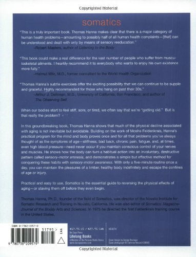 Building on the foundation laid by Moshe Feldenkrais, Thomas Hanna's groundbreaking work completely redefines the body's potential for withstanding decline. His gentle program for the mind and body proves once and for all that so many problems we accept as inevitable over time -- chronic stiffness, bad back, chronic pain, fatigue, and, at times, even high blood pressure -- need never occur if we maintain conscious control of nerve and muscle, replacing Sensory-Motor Amnesia with Sensory-Motor Awareness. The good news of Somatic Exercise is that most people simply do not have to become captives of age or injury. Once learned, this lifelong program can help almost anyone maintain the pleasures of a supple, healthy body indefinitely, with only a five-minute routine once a day.