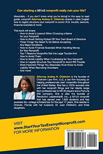 Start A 501c3 Nonprofit That Doesn’t Ruin Your Life: How to Legally Structure Your Nonprofit to Avoid I.R.S. Trouble, Lawsuits, Financial Scandals & More! (Nonprofit Law)