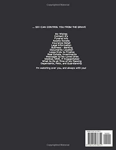 N/AOriginal price $8.99 - Original price $8.99Original price$8.99$8.99 - $8.99Current price $8.99| /Author: Planners, Peace of Mind and HeartBinding: PaperbackNumber Of Pages: 131Release Date: 27-02-2021Details: Humorous and Sarcastic Final Wishes...