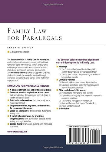 N/AOriginal price $199.95Original price $199.95 - Original price $199.95Original price $199.95Current price $93.51$93.51 - $93.51Current price $93.51| /Author: Ehrlich, J. ShoshannaEdition: 7Binding: PaperbackNumber Of Pages: 738Release Date: 16-09-2016Details: Family Law for Paralegals, 7E is a co...