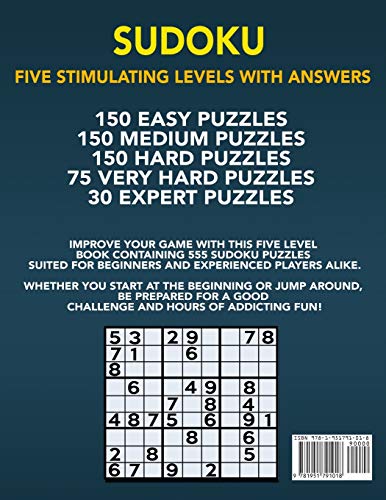 Sudoku 555 Puzzles Easy to Expert: Easy, Medium, Hard, Very Hard, and Expert Level Sudoku Puzzle Book For Adults (Puzzles & Games for Adults)