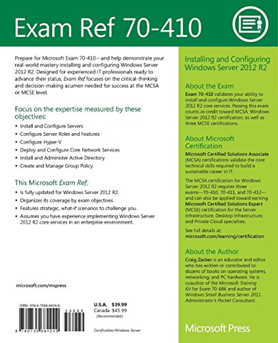 Exam Ref 70-410 Installing and Configuring Windows Server 2012 R2 (MCSA)