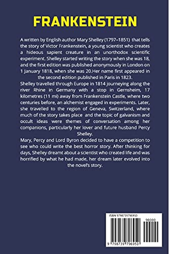 N/AOriginal price $10.99 - Original price $10.99Original price$10.99$10.99 - $10.99Current price $10.99| /Author: Shelley, MaryBinding: PaperbackNumber Of Pages: 248Release Date: 31-12-2019Details: Frankenstein by Mary Shelley is a real classic. You sh...